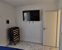 2 bedrooms with box spring beds one 2 x 2 m and one 1.60 x 2 m. There is an additional fold-away bed in one of the bedrooms. Both bedrooms have TV!